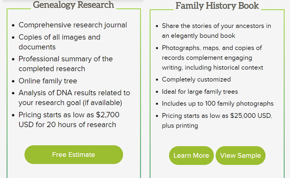 These expenses are why do-it-yourself services like Ancestry, MyHeritage and FindmyPast have become so popular. These companies charge fees that add up individually to the same kind of price range as a typed genealogical report but they host your information on modern online websites. You do have to keep paying an ongoing subscription if you want to maintain access to records on theses services, so the cost does rack up. You can however store documents and your family tree for free.