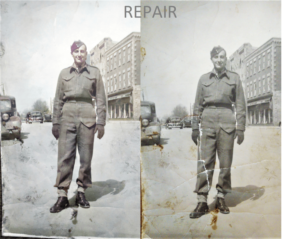Most black and white or damaged photos can be massively improved but some will – on consultation – be simply enhanced.Â